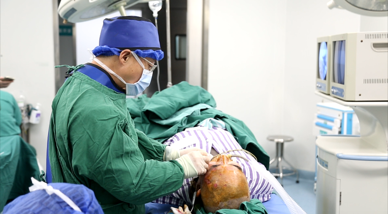 ▲ 省医院赵冬冬主任及其团队为李大爷手术中