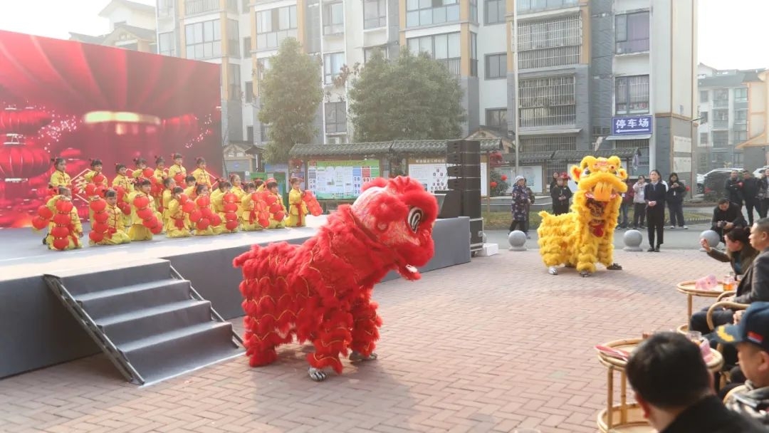 活动现场热闹非凡,宽阔的场地中央,身着传统服饰的儿童们手捧红色灯笼,跟随领队欢快地跳跃,绽放着无尽的生机与活力。活灵活现的舞狮表演也引来观众阵阵喝彩,让人们感受到传统文化的独特魅力。