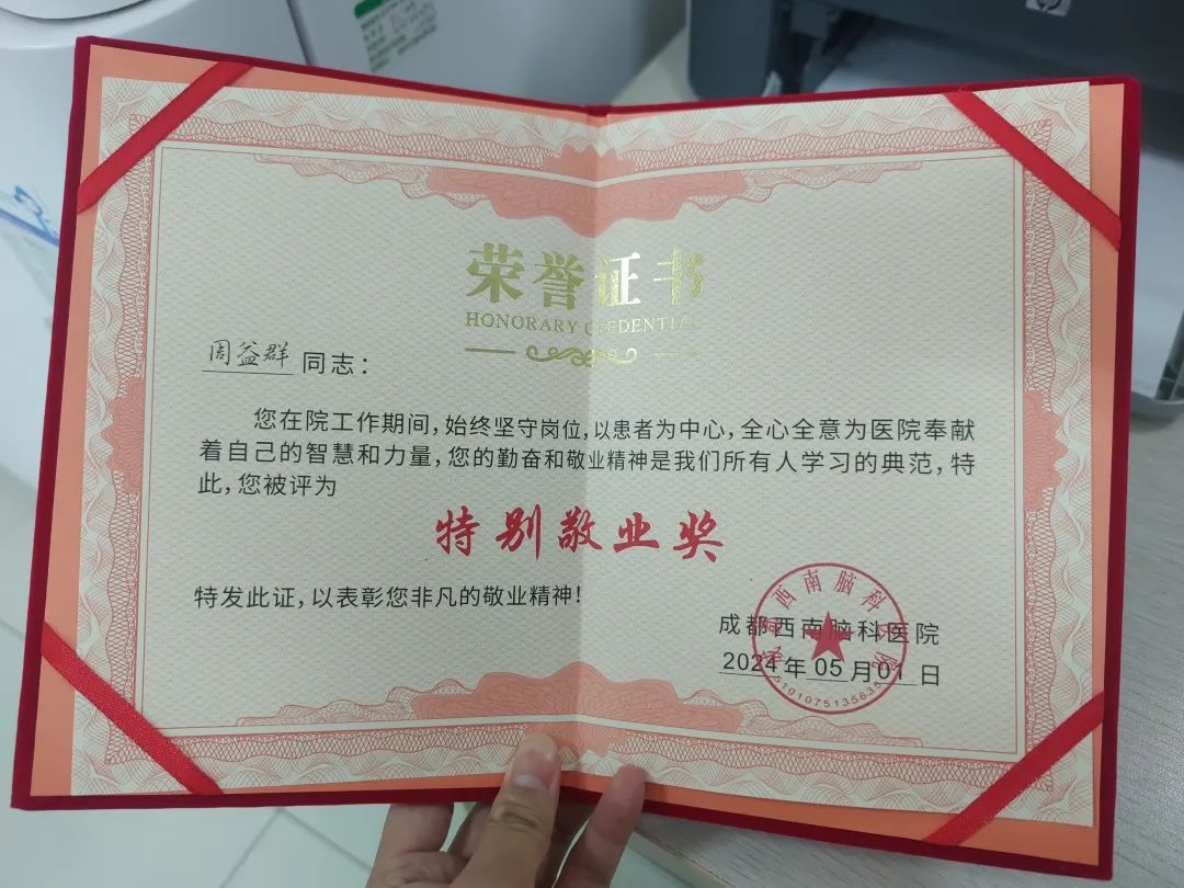 为了感谢周益群主任对医院做出的特殊贡献,医院对周益群主任进行了表彰,“特别敬业奖”实至名归。
