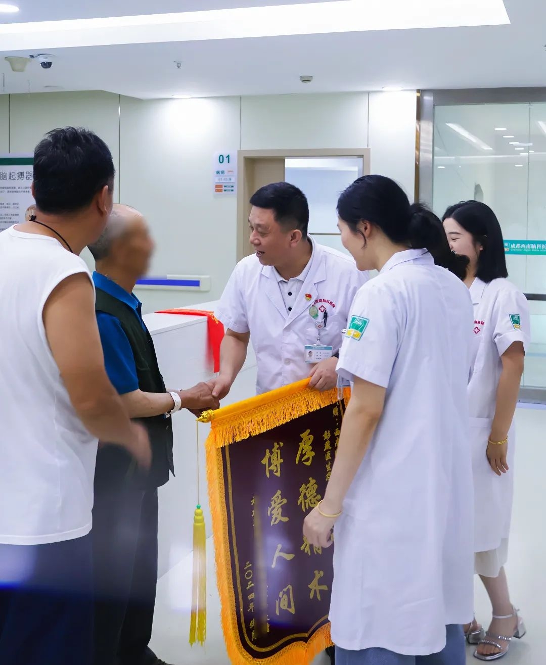 “厚德精术,博爱人间”,锦旗上短短8个字,传递着李爷爷一家对徐群策主任的肯定和医患之间的真诚与信赖。