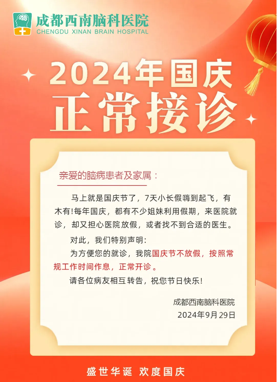 健康不打烊丨国庆看病不用愁,成都西南脑科医院为您的健康守候!