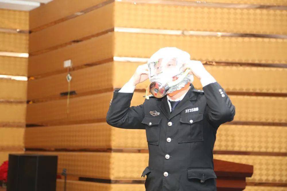 教官演示防烟毒面罩的使用