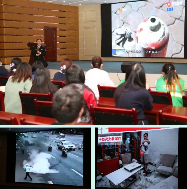 本次消防培训教官通过大量实际生活中的真实案例视频、幻灯片向大家讲述了用电安全,家庭消防知识、燃气安全使用、炒菜锅燃油起火和初期火情处置,还讲解了灭火器的分类及使用方法、发生火情后如何进行逃生自救等知识。