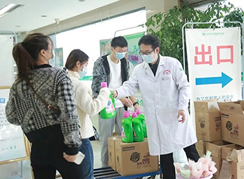 我院医务科李鹏主任为女职工发放纪念品