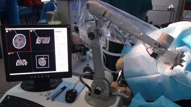 CRAS机器人脑外手术定位系统+神经调控技术,借助目前医学界最先进的航天CRAS机器人手臂,运用微侵袭神经外科技术(CT脑立体定向、神经导航结合显微手术)进行病灶靶点定位,采用该CRAS机器人手臂的精密传感器进行全方位分析,将仅0.3mm的射频消融针探入病灶,实施神经细胞核团或神经纤维功能调控。